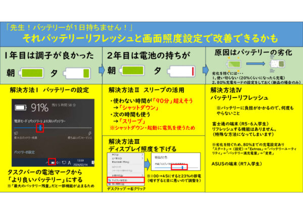 山梨県立甲府工業高等学校定時制 > 生徒PC(調子悪いと思ったとき(アップデート・無線・バッテリー)) 2026年4月10日カテゴリー: 生徒PC(調子悪いと思ったとき(アップデート・無線・バッテリー))