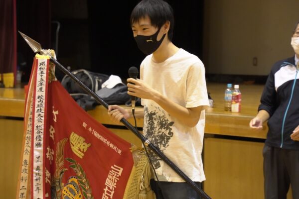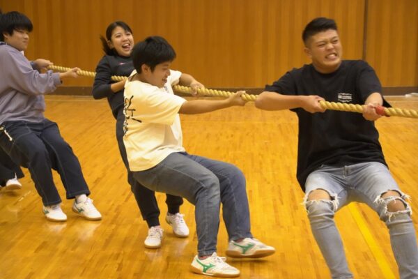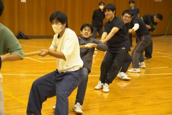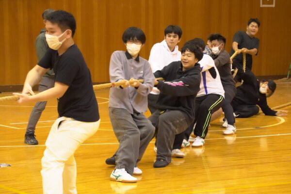 山梨県立甲府工業高等学校定時制 > 学校生活 > 学校行事 > 定時制学園祭【北斗祭2日目】 2023年10月6日カテゴリー: 学校行事 学校生活 定時制学園祭【北斗祭2日目】 令和5年10月6日(金)に定時制の学園祭【北斗祭】が行われました。 2日間通して全部で7ステージ行い、それの合計点数が多いチームが総合優勝となります。 2日目はスポーツ部門です。 ステージ5 キックターゲット ステージ6 長縄チャレンジ ステージ8 綱引きタッグトーナメント 1日目のe-sports部門で点数が取れなかったチームも大逆転のチャンスがありました。 【2日目結果】 ・1位 くじらチーム(市川・坂本・光木・山本・野木・丸茂) 690点 ・2位 しろくまチーム(遠藤・里吉・小林・篠原・保坂・野呂)654点 ・3位 ウミガメチーム(宙太・椿・光輝・太貴・清嶌・吉村)650点 【北斗祭総合結果】 ・総合1位 しろくまチーム(遠藤・里吉・小林・篠原・保坂・野呂) 1006点 ・総合2位 くらげチーム(渡辺・一瀬・飯森・柊羽星・小宮山・宮川)957点 ・総合3位 イルカチーム(永井・鷹野・佐藤・輿水・仲澤・前川)898点 ・ポスター 電気科2年 里吉 唯人 ・テーマ 建築科4年 前川 悟空 2日目を終えて、たてわりでチームを組んで、いつもは話さない先輩や後輩と コミュニケーションを取ることができていい大会になったと思います!