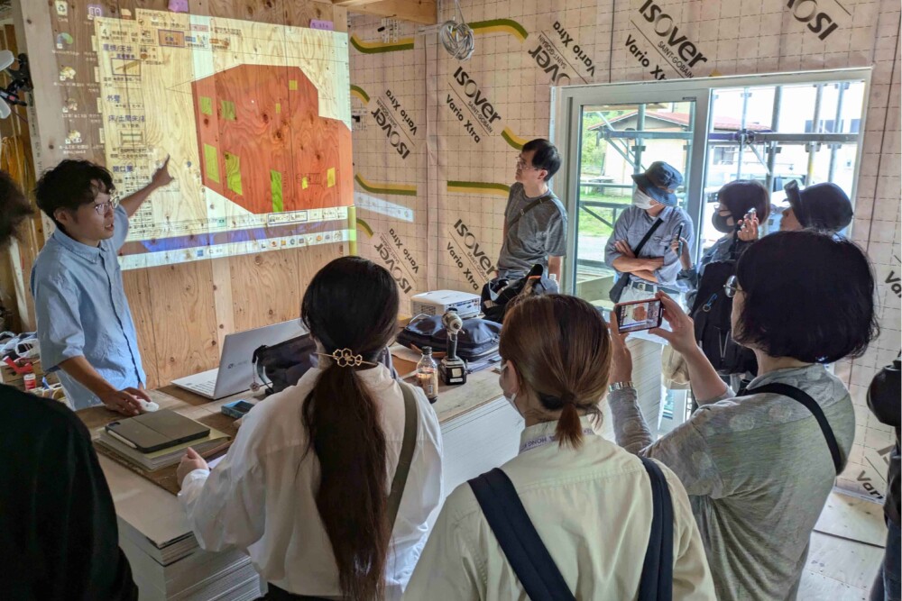 木造軸組軸組パネル工法による住宅(設計:遠藤政信氏,施工:梶原高一氏,測定:卜部良太郎氏)を題材として、合理的な構造計画及び断熱・気密性能を担保する施工について、実例を確認しながらレクチャーしていただきました。