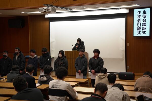 令和7年12月24日(水)に校納式・新生徒会認証式・引継ぎ式を行いました。