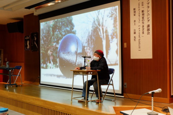 令和2年12月15日に彫刻家 井上公雄先生をお招きし「彫刻家の生きざま」というテーマで先生自身の経験を下に夢に向かって主体的に行動をするにはどのようにしていくべきか等についてご講演いただきました。また、講演会の後にはパネルディスカッションも行い実際に生徒と意見を交換しながら貴重な時間を過ごすことができました。
