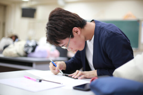 私には建築に対する知識がほとんどなかったので、入学当初は授業についていくのが精いっぱいでした。専門用語をノートにまとめ直し、始業前に登校して課題に取り組むなど、自分なりに工夫しながら取り組んでいるうちに、クラスメイトや先生方との距離感が近いことを利用して、積極的に質問し、テスト前には勉強会で教え合うことができる関係性をつくることができ、気が付けば建築用語や概念を理解できるようになっていました。