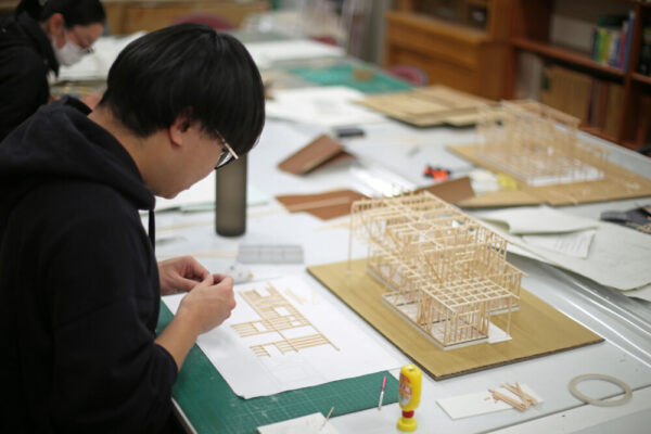 最も印象に残っているのは「向こう三軒両隣」を設計せよという課題です。6人1組のグループで思考を組み立て、図面や模型を製作するなかで、クラスメイトの着眼点や構成力に刺激を受けながら、想いをカタチにする楽しさを実感しました。2年間の学びを終えた今だからこそ、一つひとつの課題が相互に関連づけられて知識・技術の習得が効果的に図られていたことが分かります。